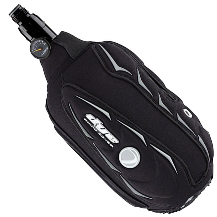 Aside from your elbow or knee, your tank is usually the one thing that hits the ground the hardest. Taking care of your tank is just as important as your body. 4500 pounds of pressure is a serious thing. The rhino cover is a virtual barrier for your tank to help prevent scrapes and scuffs that could end up terminating the life of your high pressure air system. The wrap around direct injects and the injection molded scale section of the grip practically glue the tank to your shoulder. Another item where style meets function, direct inject logos ensure long lasting good looks. Because the bottom usually takes the most abuse, we‰۪ve included high-density nylon coated padding with rubber abrasion print to help soften the blows.