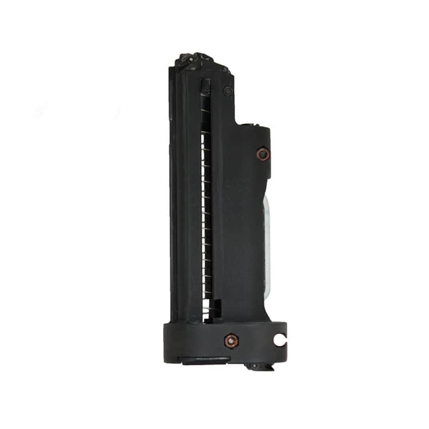 he First Strike Compact pistol is a revolutionary design in paintball pistols as its combination of performance and compact size are second to none! Feed the First Strike Compact with a compact paintball gun magazine for optimal size, weight and ergonomics! This gun magazine, designed specifically for the First Strike Compact .68 caliber paintball pistol, holds 6 rounds and an 8 gram CO2 cartridge (not included).