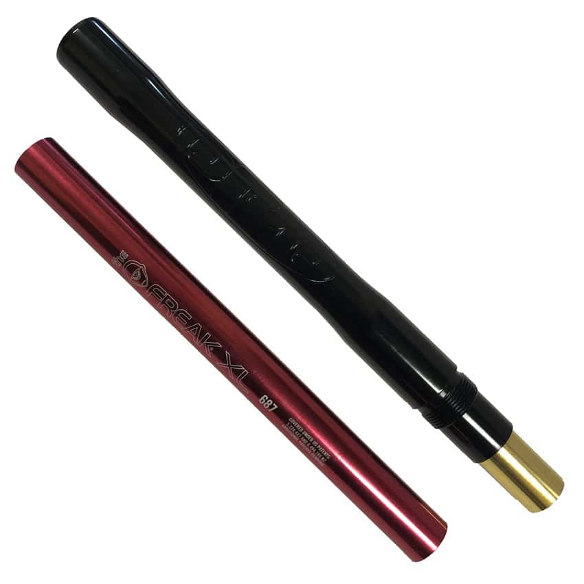 Combine the the immensely popular Freak XL Insert system with the traditional styling the DYE UL tip. This is the perfect blend of new and old which looks perfect on any autococker build. Matching the paintballs to the barrel bore size is an essential part of getting the most from your markers peformance. A paintball which fits the barrel well should be held in place by touching the interior walls of a barrel. It should not just roll through. Furthermore you should be able to blow the paintball out of the barrel with little force. If it is too tight your marker will loose efficiency and possibly break the paintball in the barrel as it passes through. The Freak XL system gives the user an affordable way to have a selection of bore sizes.