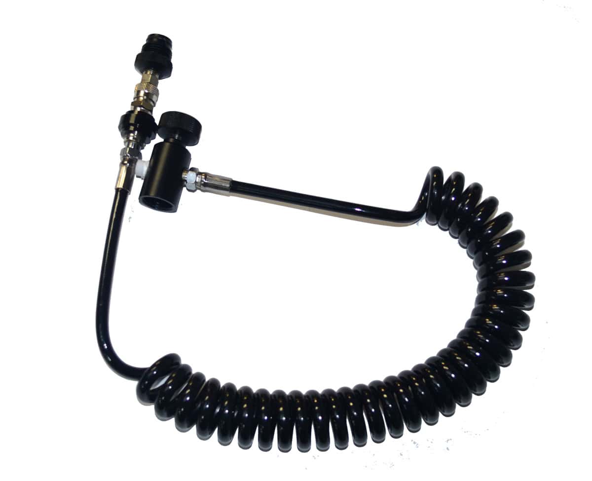 The Premium Remote Line with Slide Check allows you to move your tank to a pouch and lighten your marker. The Slide Check and Quick Disconnect allows you to degass the line and remove it from the marker in seconds.