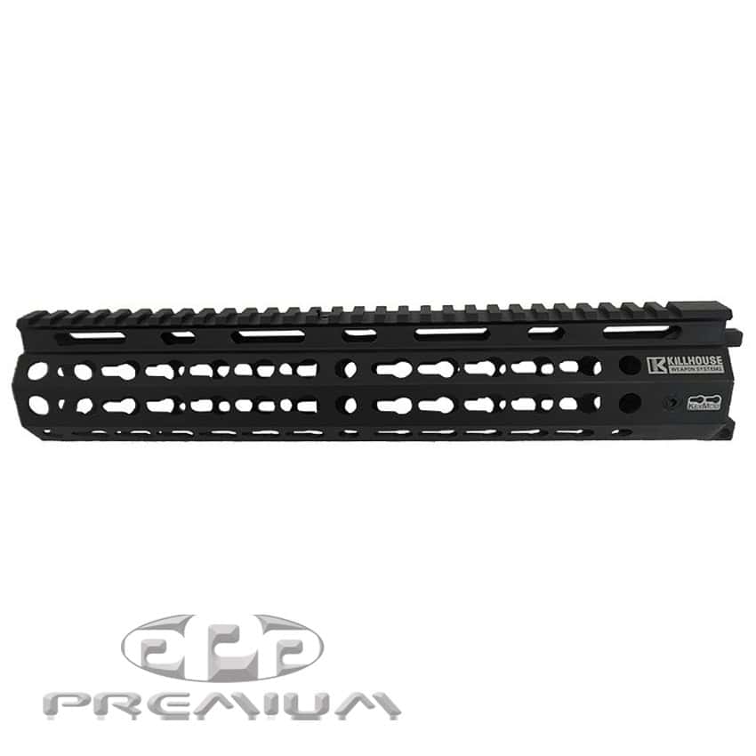 The brand NEW Killhouse Free Float TMC Keymod Shroud is the perfect addition for players looking to customize their Tippmann TMC Marker to the fullest while making it look super realistic! The keymod rail-type uses a real steel, open-source design which allows operators to use a wide array of attachments (because of its standardized universal system) from flash light mounts, laser modules and scopes to foregrips and more! You can also attach select picatinny rails to the keymod shroud in order to mount picatinny specific gear! Another huge benefit of the keymod shroud is that it is very lightweight, which allows the operator to carry their marker around with ease. The Free Float Shroud is also very sturdy and able to withstand any game type that you throw at it. With the ability to deck your gun out with the coolest gear while looking super tactical, you can’t go wrong with a Free Float TMC Keymod Shroud by Killhouse Weapon Systems!