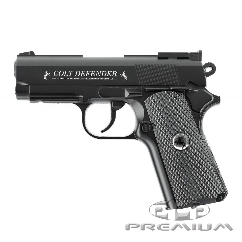 The Umarex Colt Defender is a compact, CO2-powered .177 caliber (4.5mm) BB air pistol known for its durable all-metal construction and realistic 1.6 lb weight. It is a officially licensed replica of the genuine Colt Defender 1911 firearm, designed for recreational plinking and target practice.
