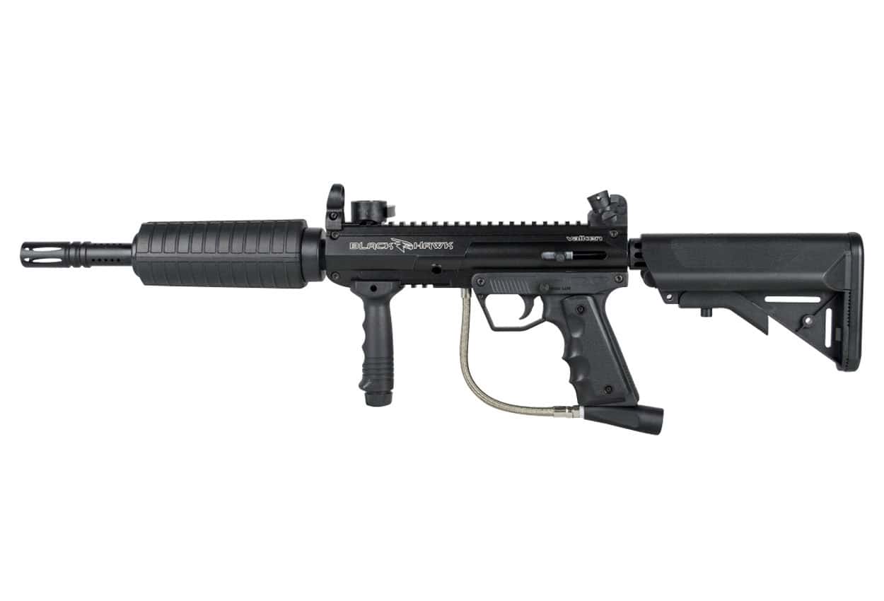 The Valken Blackhawk is a hopper fed tactical paintball gun capable of firing standard .68 caliber paintballs. No modifications or after-market parts necessary! The Valken Blackhawk Foxtrot Rig features include a full metal receiver, M16 barrel shroud, and removable front & rear sights. A picatinny top rail and quad rail barrel shroud provide numerous attachment points for additional accessories such as foregrips, sights, lasers, flashlights etc; also included with every Valken Blackhawk Foxtrot Rig is a gun bag. The Valken Blackhawk Foxtrot Rig is a tactical semi-auto paintball gun that brings mil-sim an exciting, well rounded marker at an entry level price. With the realistic look that the Blackhawk features, Valken decided it would be a good idea to keep your gun protected and covered up during transport.