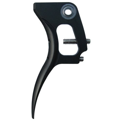 Violent Series Scythe trigger for the DLX Technology LUXE marker. This trigger is made of Delrin so it is super lightweight and very responsive. The “Scythe” shape of the trigger flows with the natural bends in your fingers and is ergonomically correct. This trigger uses dual precision bearings for the pivot point. The front face of the trigger has a full radius that runs the entire length of the trigger. The radius on the front gives you a comfortable contact point with your fingers, not a flat front and corner edge like other triggers on the market. The trigger is only available in black; this is due to the nature of the material.