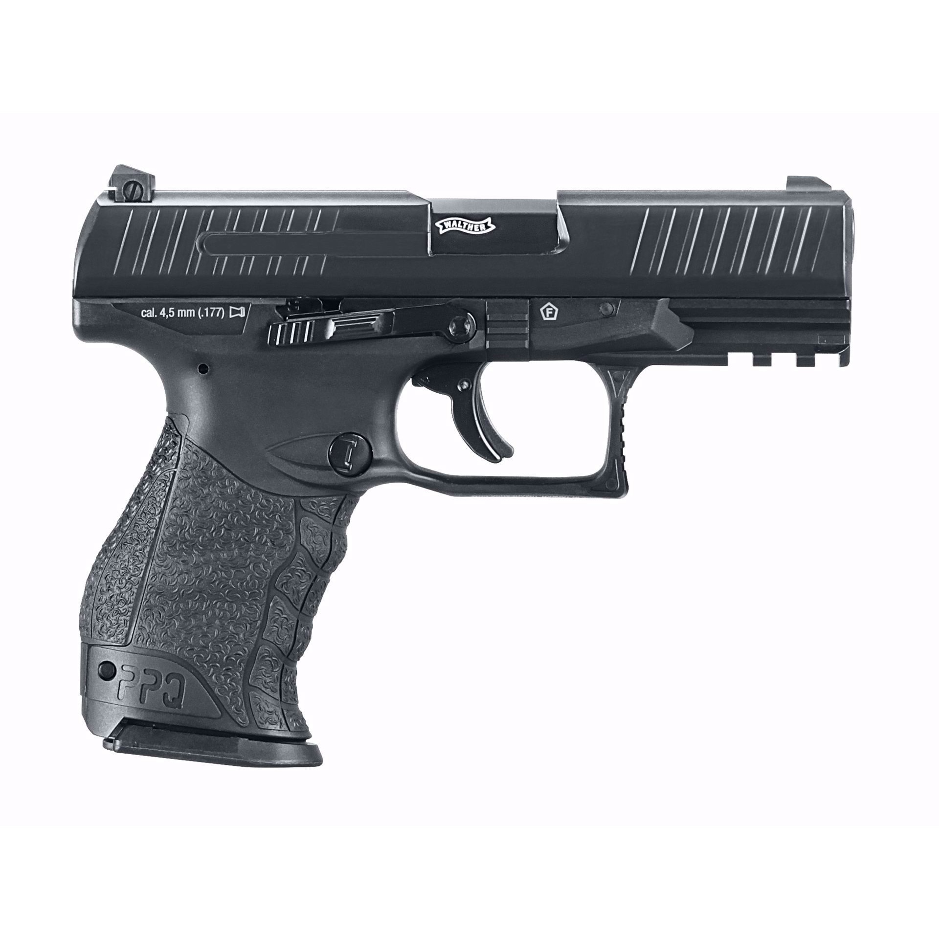 Try the Walther. Walther’s PPQ has won over countless shooters because of its grip and because of its trigger. The PPQ’s superb ergonomics make it an ideal carry and duty handgun and now you can train with a blowback action PPQ M2 pellet pistol. This replica fits in holsters made for the PPQ M2 and features a 20 round belt fed drop free magazine. Lead pellets have a lower ricochet risk but greater accuracy than round steel BBs. The Walther PPQ M2 pellet pistol can be outfitted with accessories on the integrated Picatinny rail to fully complement your carry or duty handgun. Training with air offers shooters a chance to stretch their ammo dollars further by opening up new opportunities for training at home. Try the Walther PPQ M2 and try the Walther PPQ M2 pellet pistol.